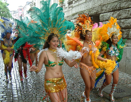 Das Landeskulturfest 2007 startete am Samstag, den 23.6. mit einer großen Parade der Sambaschule Oldenburg-Eversten durch Oldenburgs Innenstadt. 55 Aktive trotzten dem regnerischen Wetter bei heißen Rhyhtmen und guter Laune. |